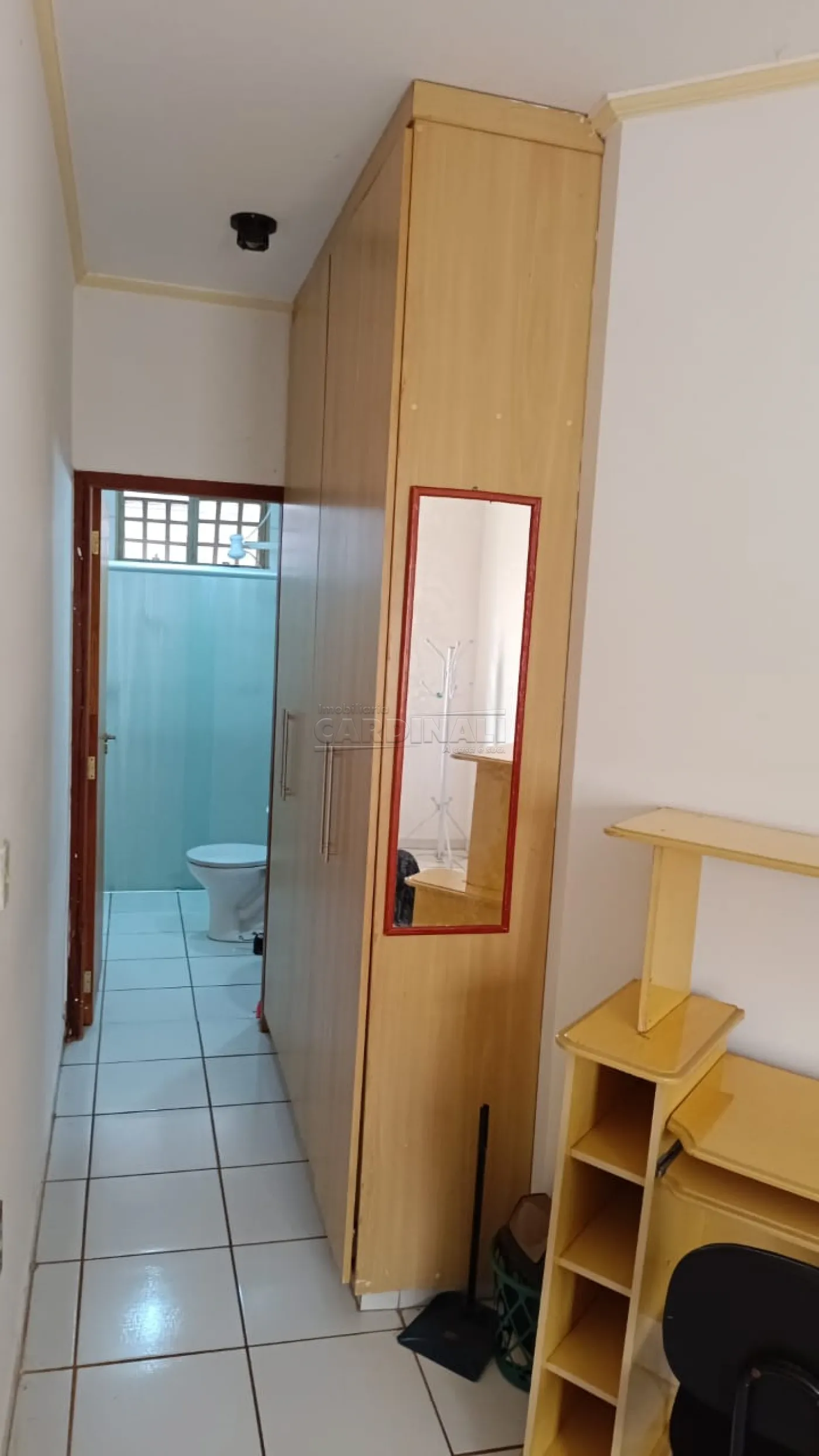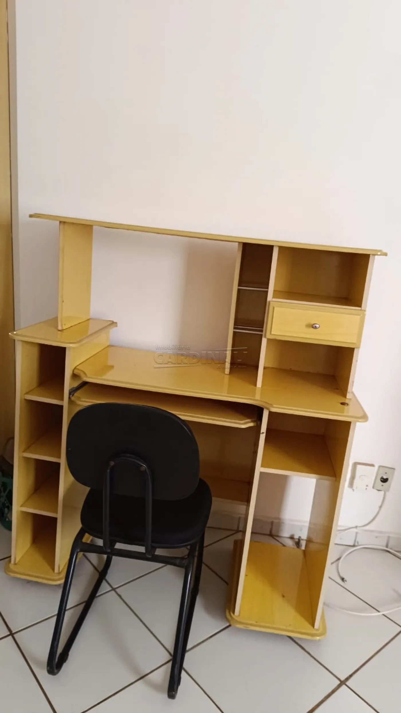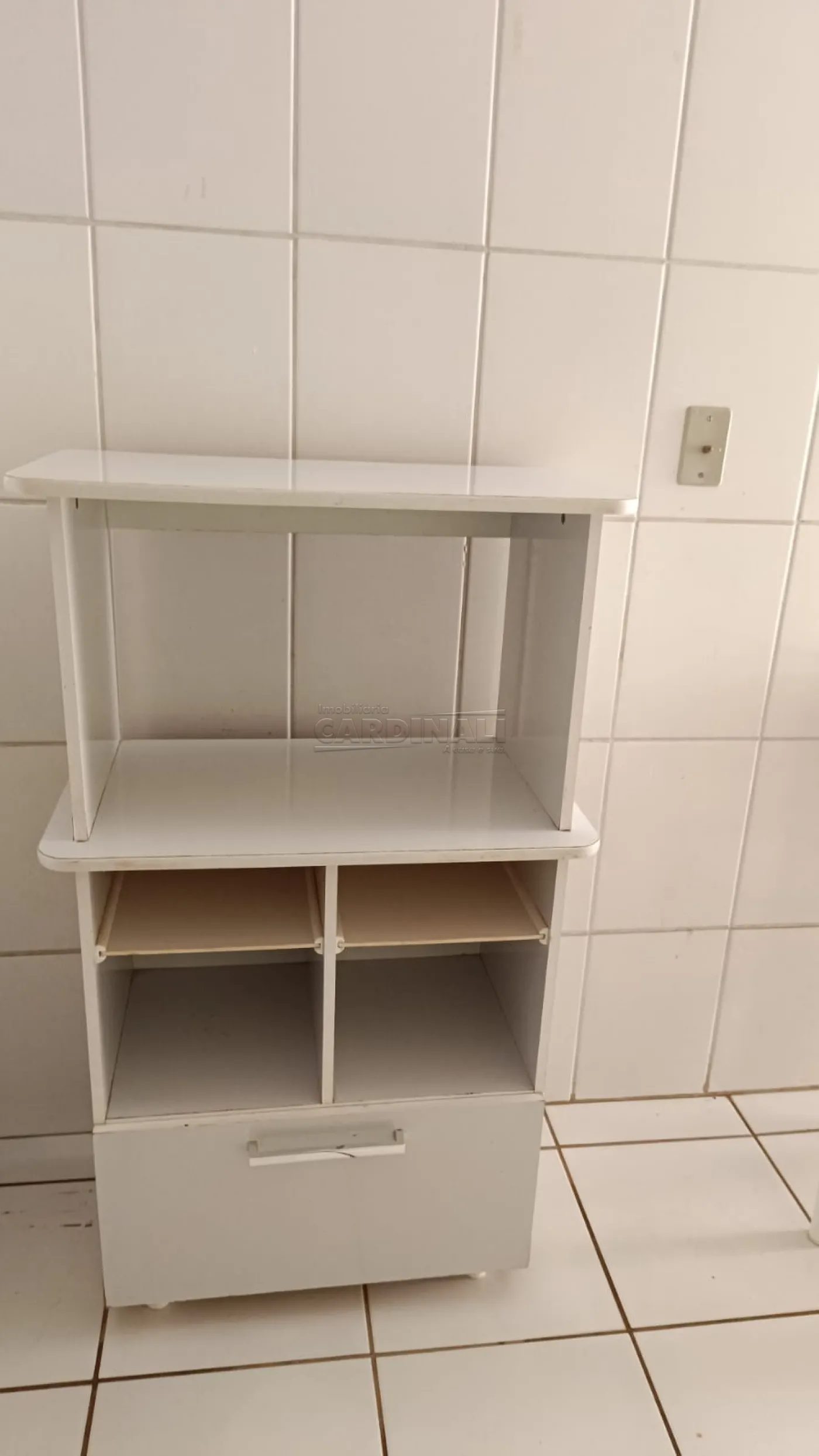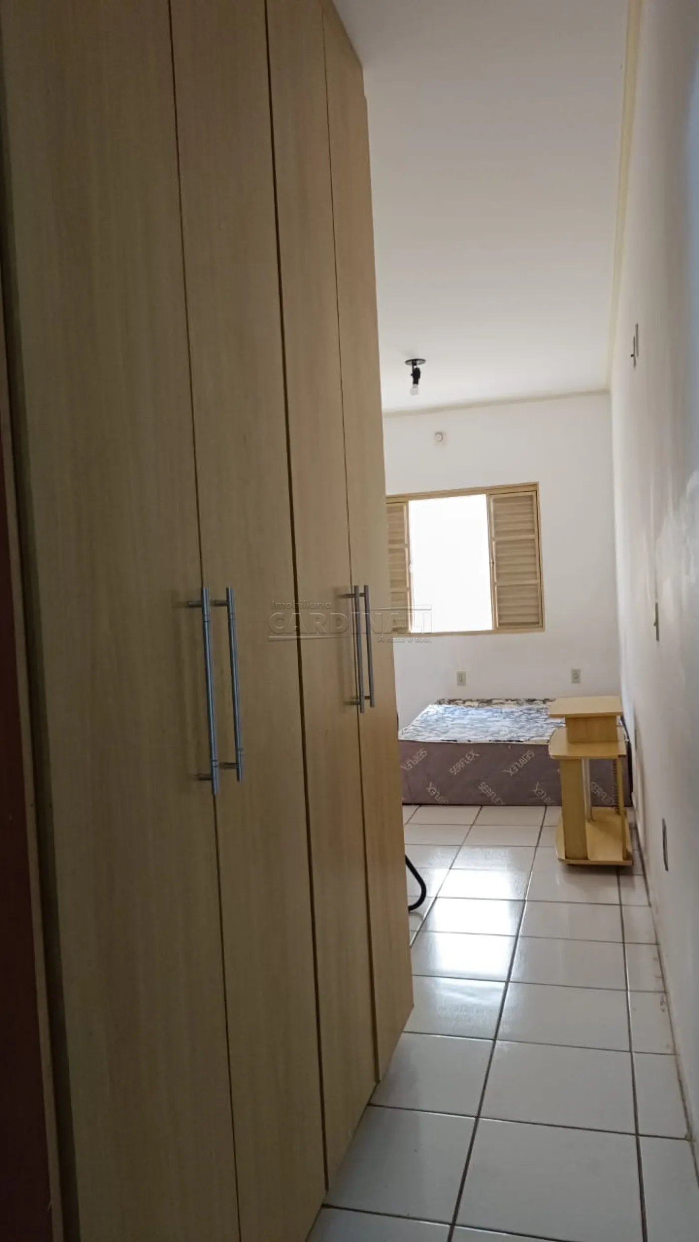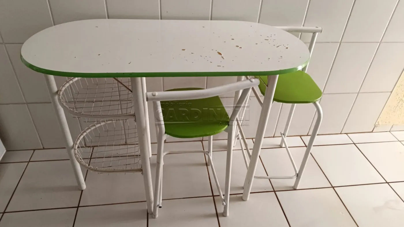 Aluguel de Apartamento Kitnet no centro de Araraquara/SP. Dormitório suíte com cama box e uma de solteiro com colchão, armário planejado, sala, copa, cozinha com armários e lavanderia. Garagem coberta, gás encanado, energia solar no banheiro, portão eletrônico e câmeras de segurança.