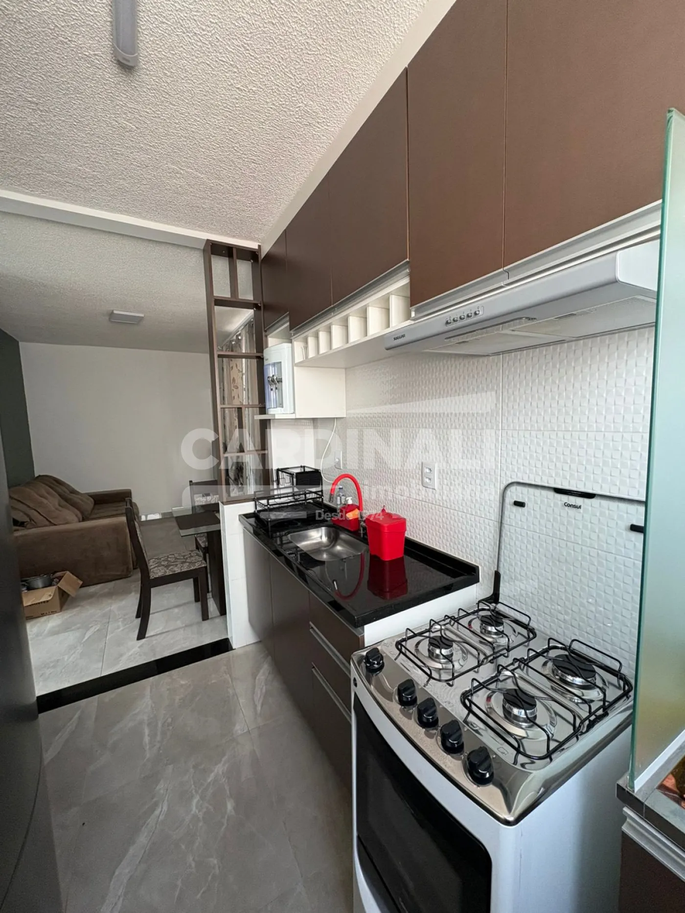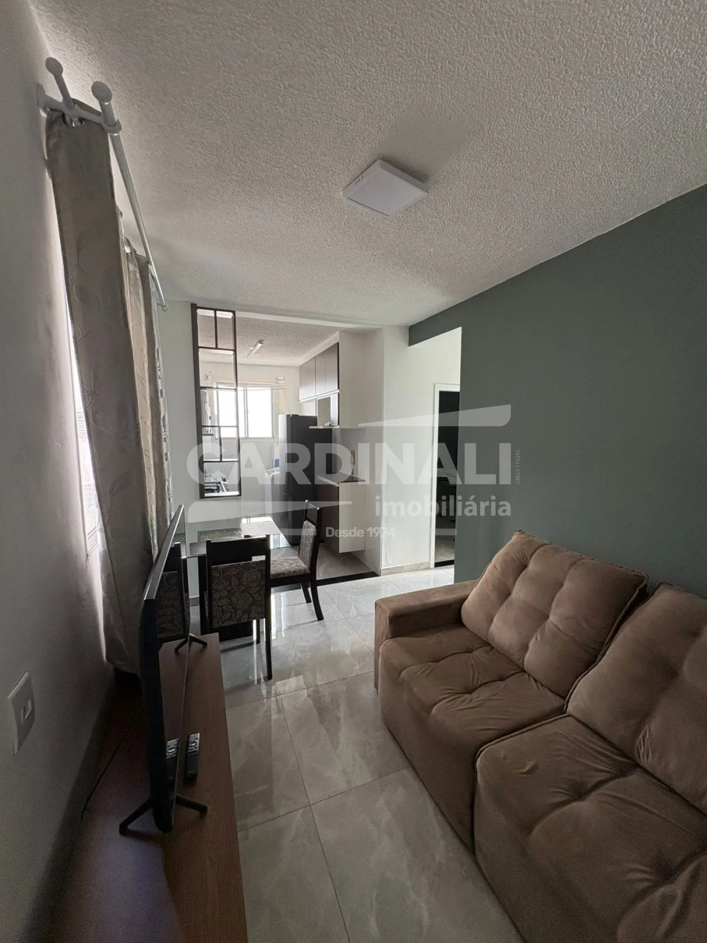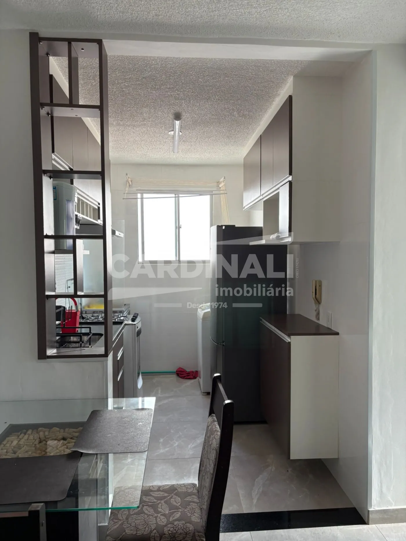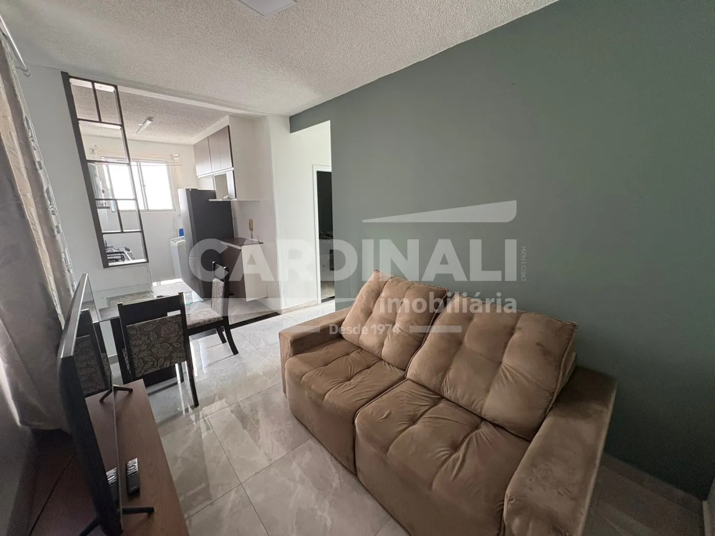 Excelente Apartamento Residencial Padrão com 02 dormitórios com guarda-roupa, sala com sofá retrátil, rack e mesa com 4 cadeiras. Cozinha com armário planejado, fogão, geladeira, máquina de lavar e varal de parede. Escritório com escrivaninha e cadeira, banheiro com box de vidro, 01 vaga coberta de garagem e piso frio/cerâmica.