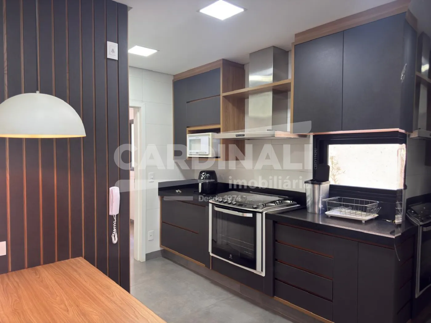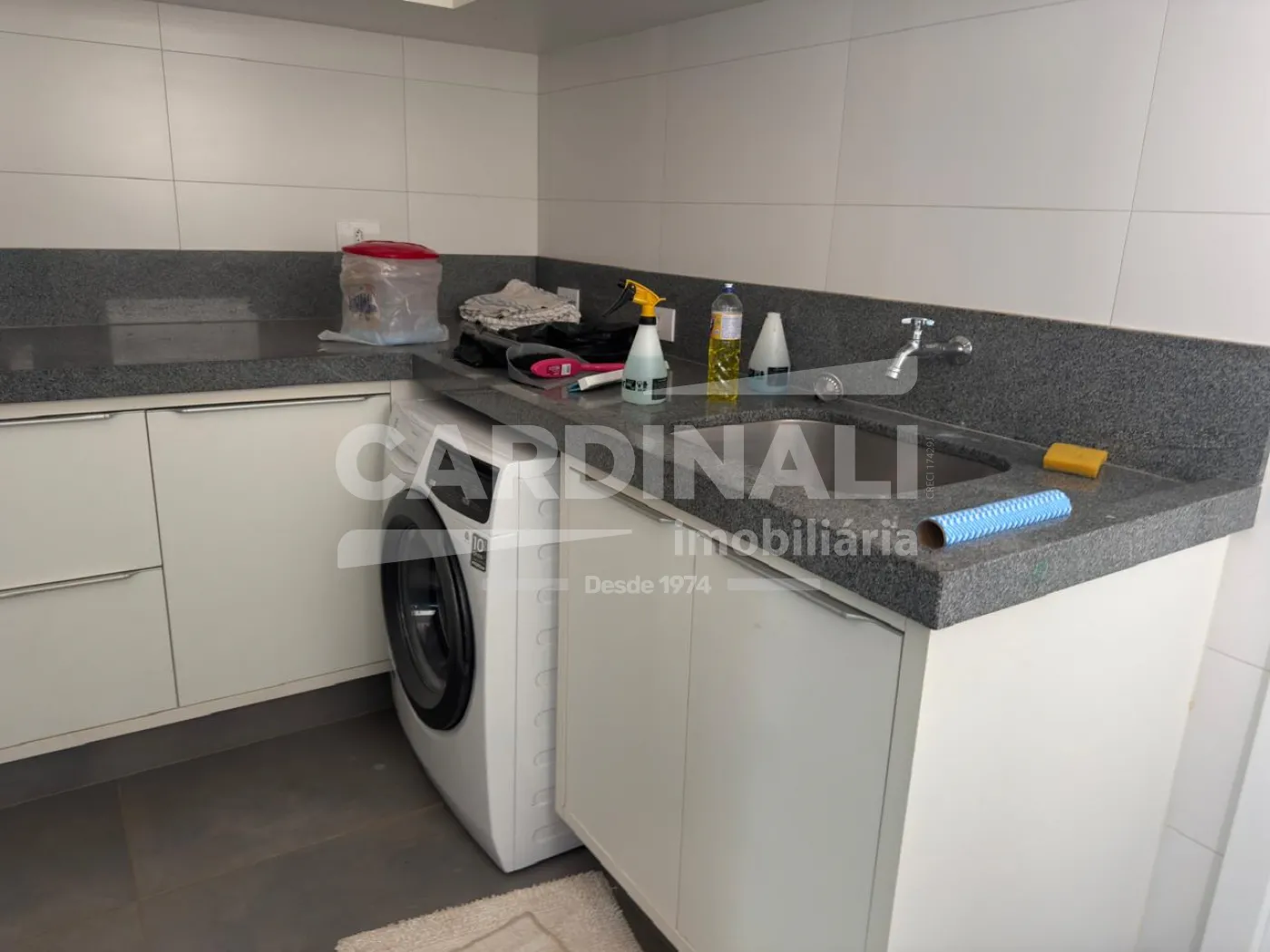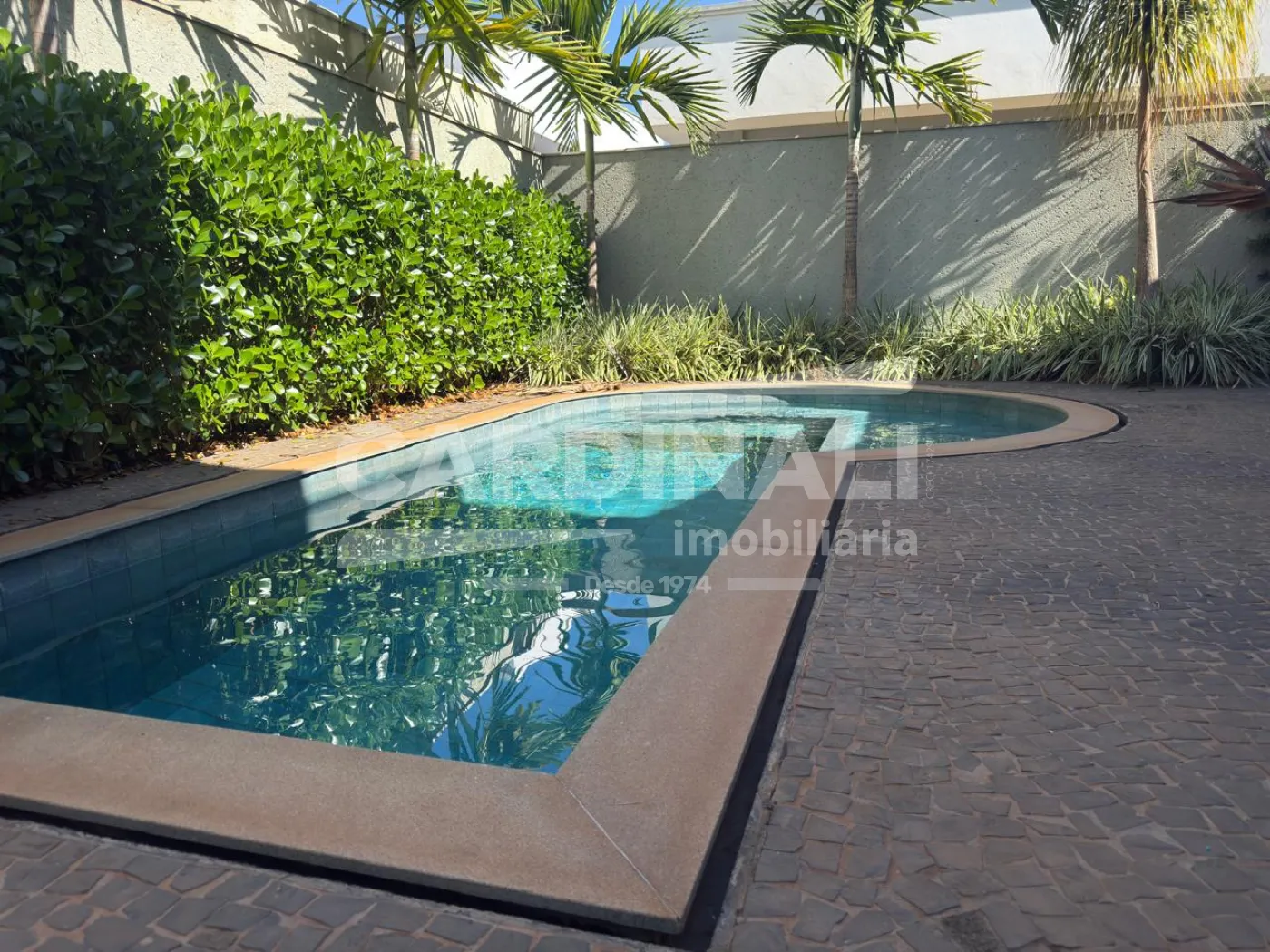 Imóvel oferece 03 suítes repletos de armários e ar condicionados, camas, de solteiros e de casal, sala ampla em 02 ambientes com pé direito alto, painel com TV, sofás, mesas e cadeiras, cozinha toda planejada com armários, fogão, micro-ondas, lavabo, escritório com armários, corredor com roupeiro, lavanderia com armários e máquina lava e seca, área gourmet com churrasqueira, armários, banheiro externo para piscina, quintal com piscina grande, paisagismo, garagem coberta para 02 carros e mais 02 descobertos.