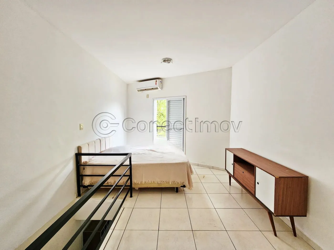 -01 suíte com sacada, armários, cama, rack e ar-condicionado, parte superior;