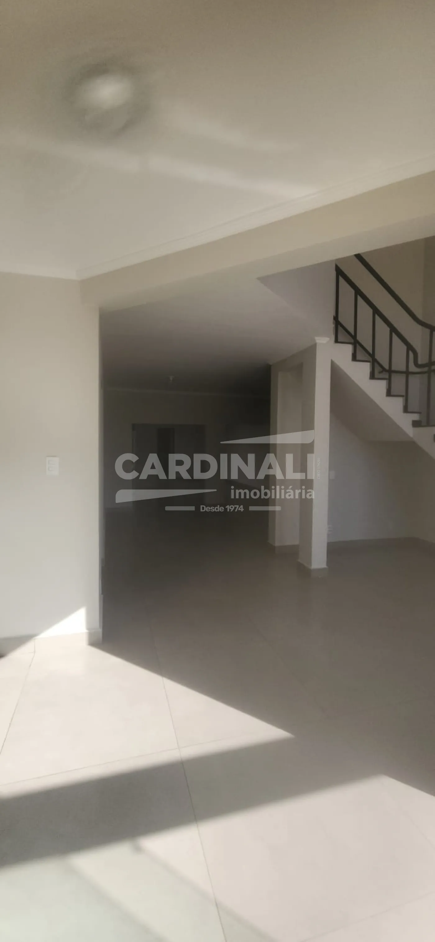 Salas espaçosas com pé direito alto proporcionando um ambiente aberto e arejado