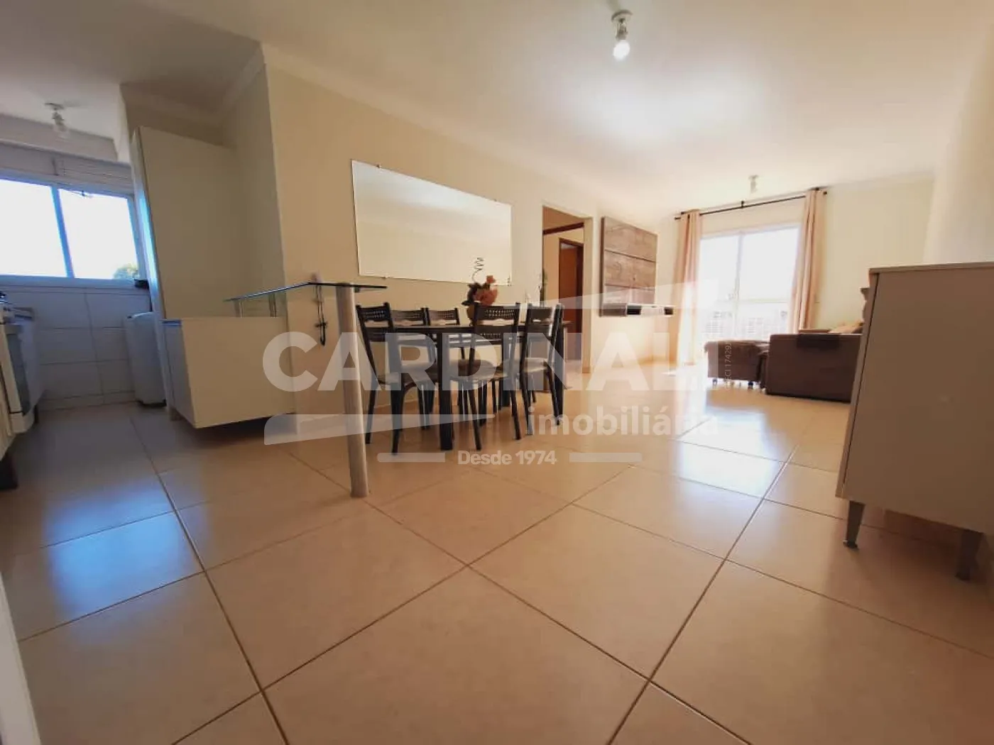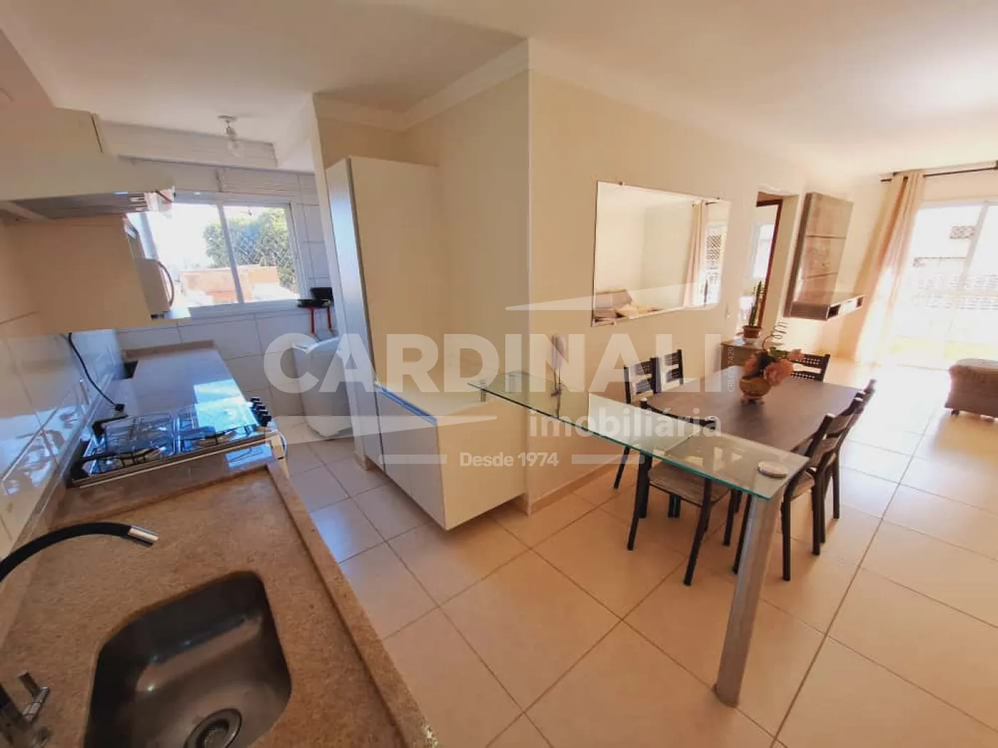 Sala e cozinha integradas oferecendo um ambiente amplo e funcional