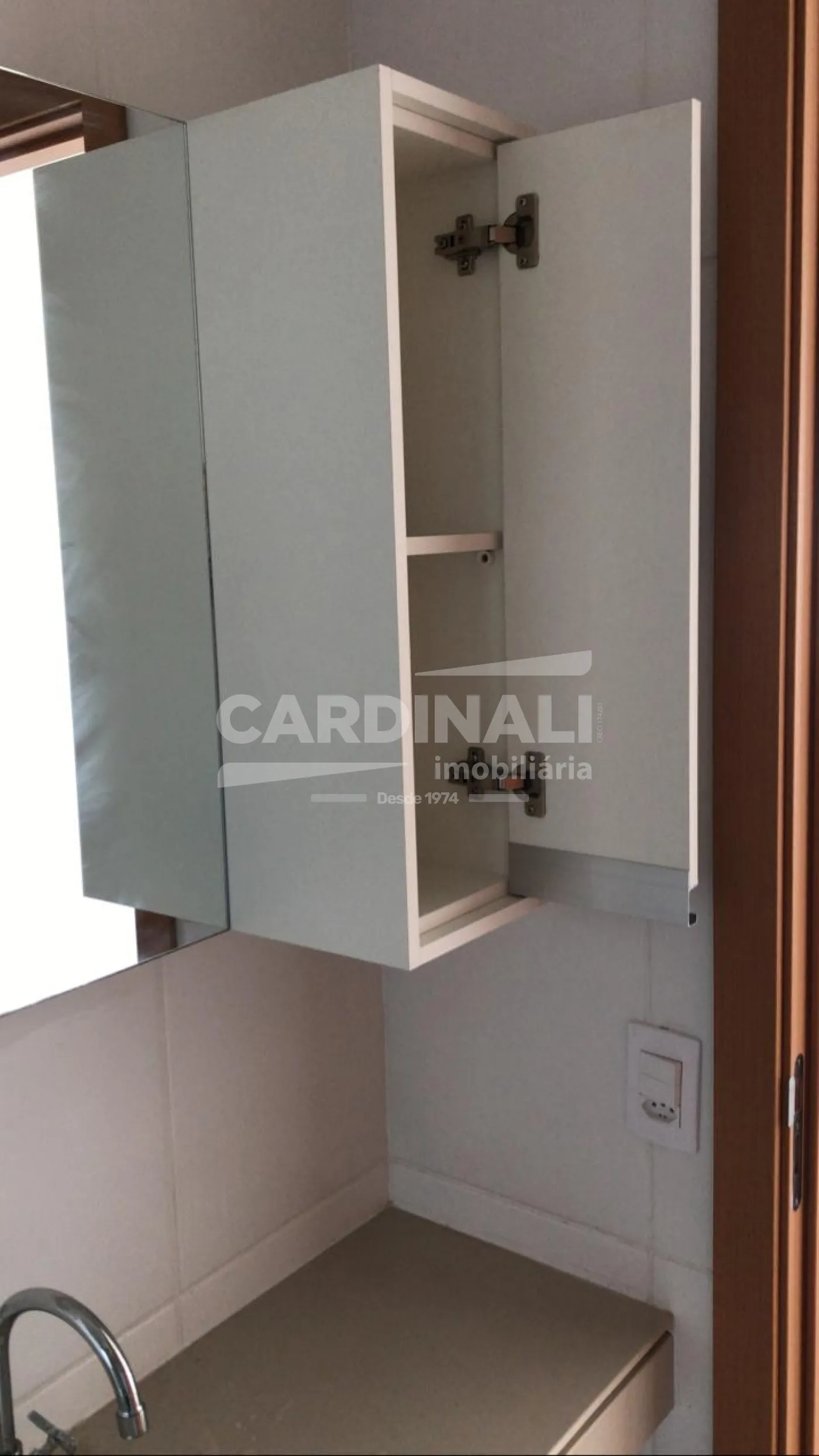 - Conjunto de armário/Gabinete de mdf em bom estado, com 01 porta, com 01 puxador, com 1 prateleira e com espelho embutido no móvel.