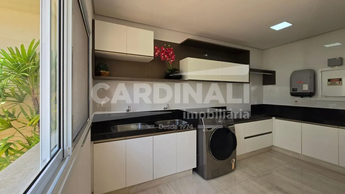 A cozinha equipada e espaçosa complementa a área social com praticidade e funcionalidade.