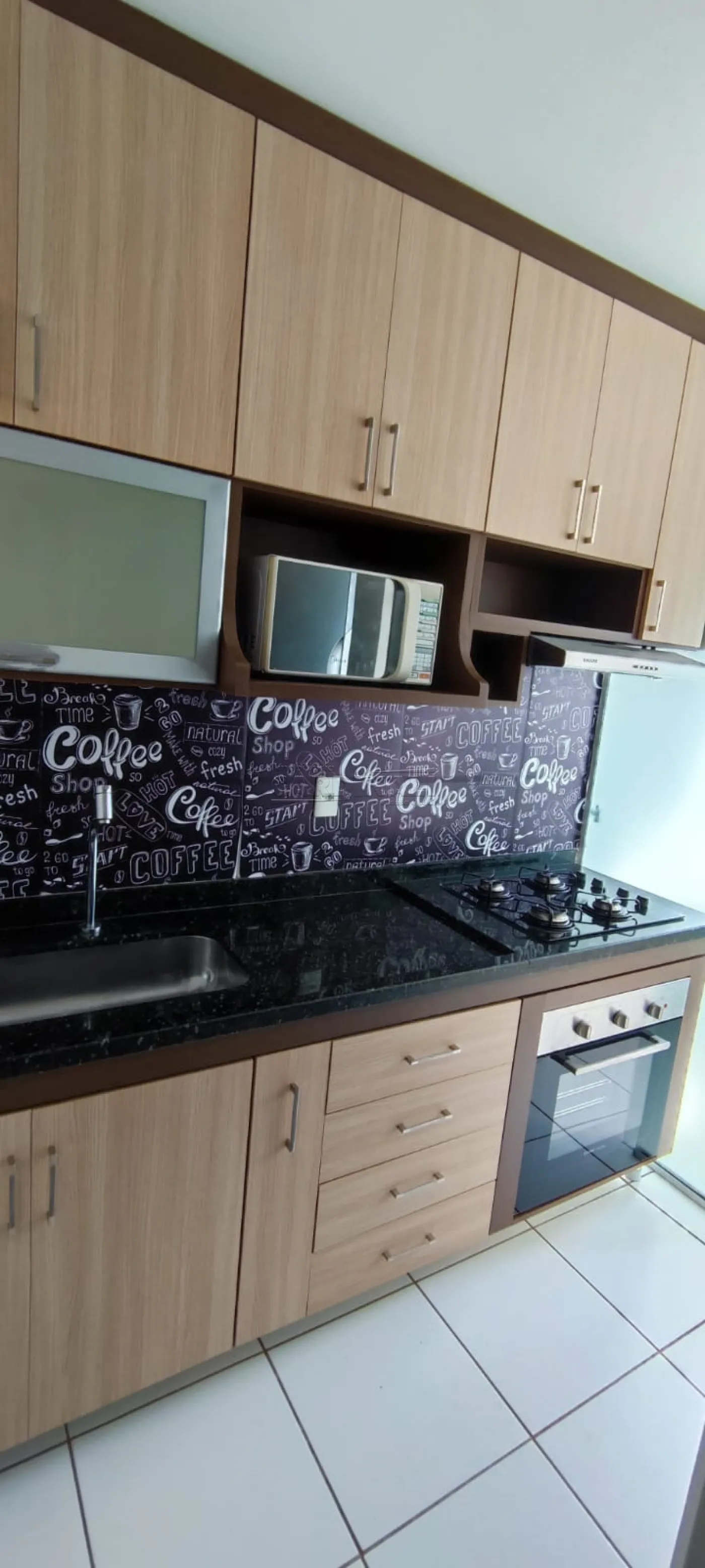 Cozinha equipada com armários, cooktop e mais, oferecendo praticidade para o cotidiano