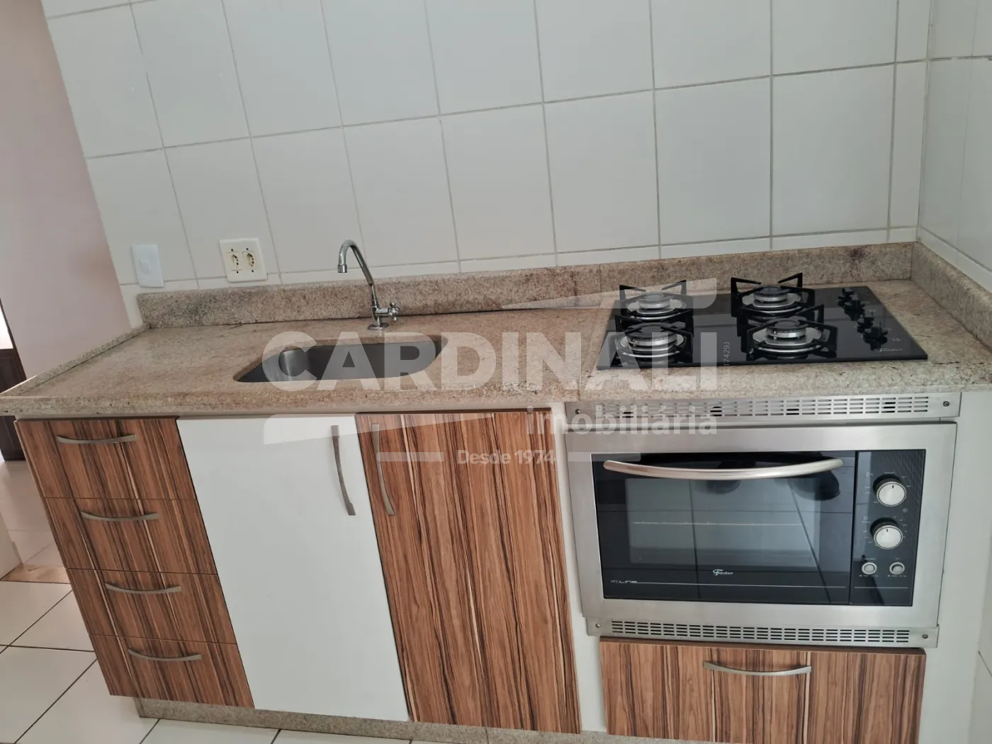 Cozinha planejada com forno e cooktop trazendo praticidade para o dia a dia