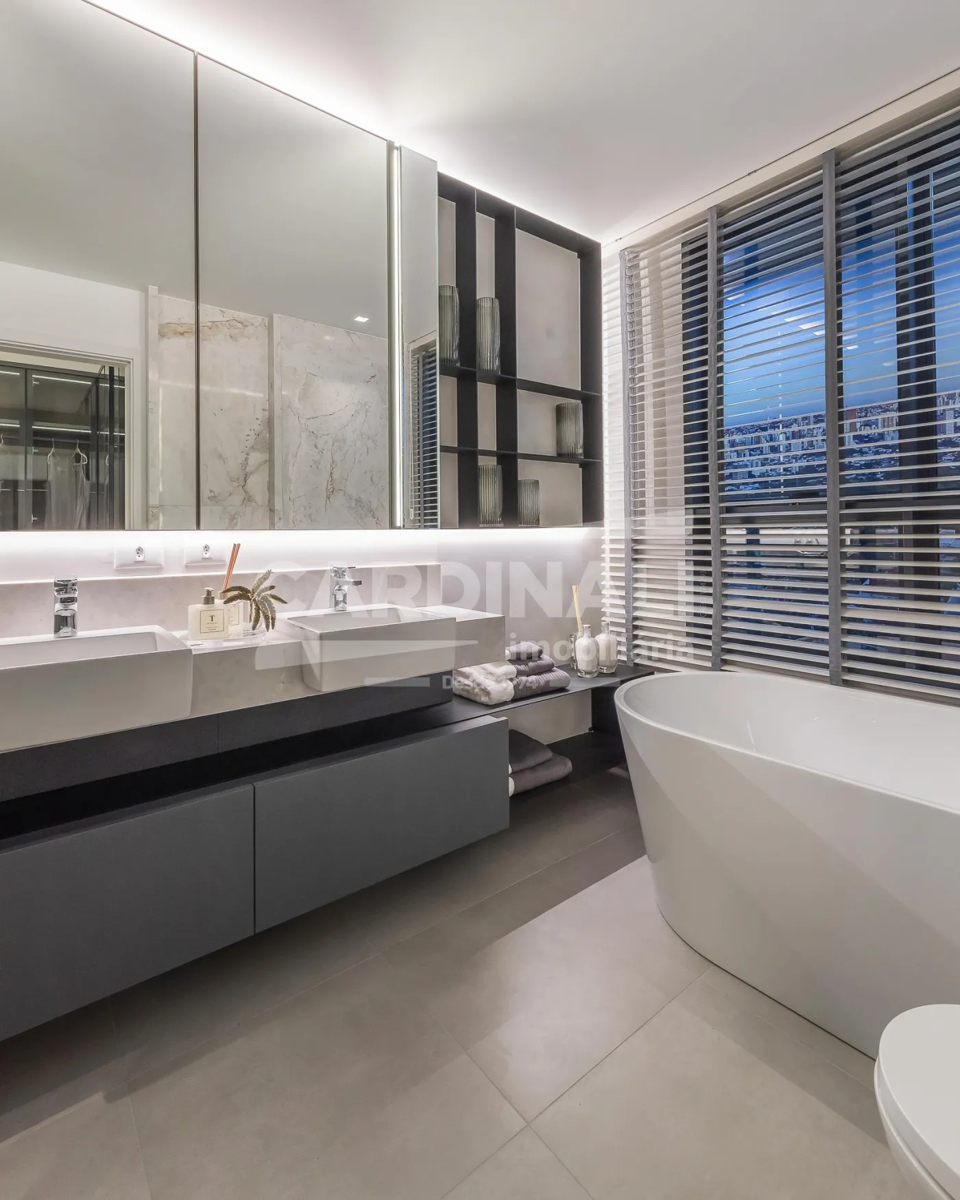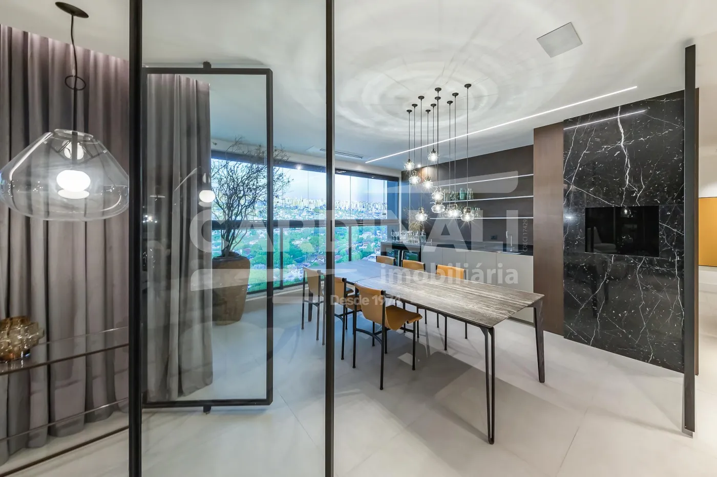 Outros diferenciais como vista permanente para o sol da manhã e materiais de alto padrão usados em todo o apartamento