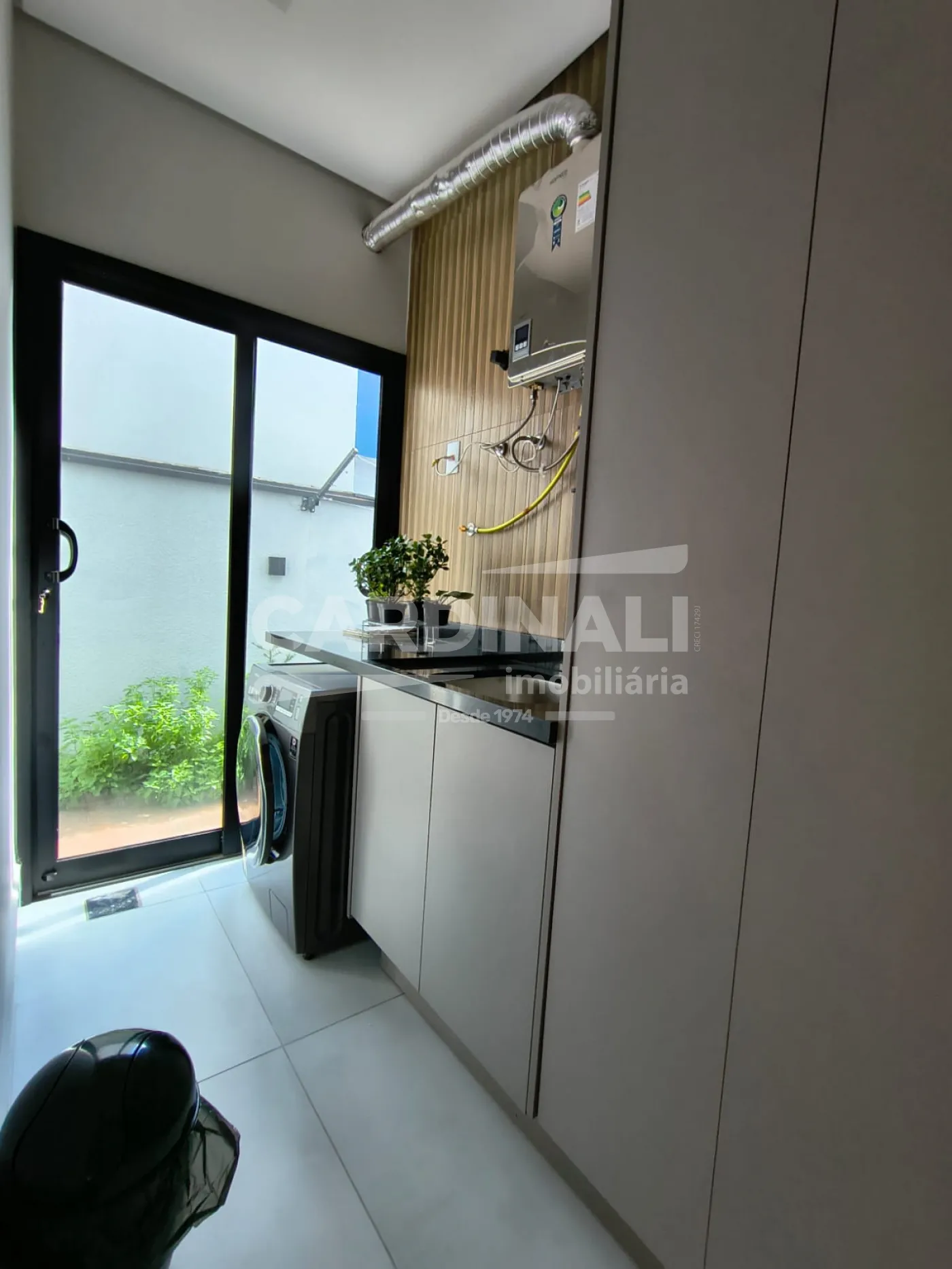 A casa conta com energia fotovoltaica e instalação a gás, proporcionando economia e eficiência no dia a dia.