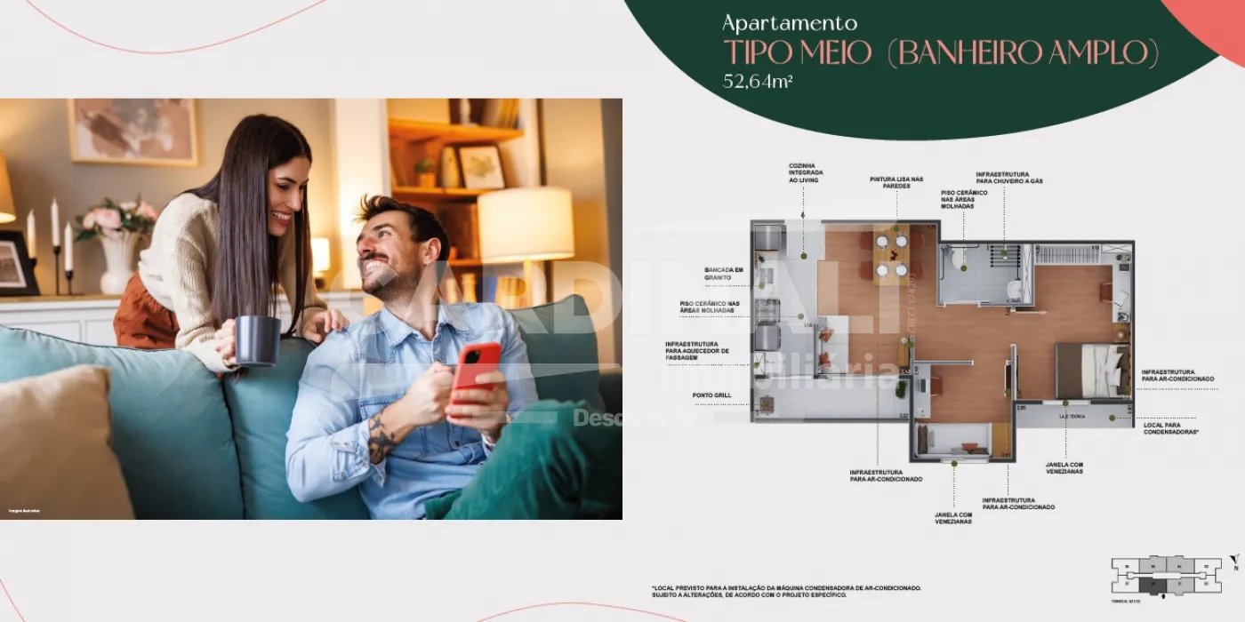 Apartamento de 52m² com: