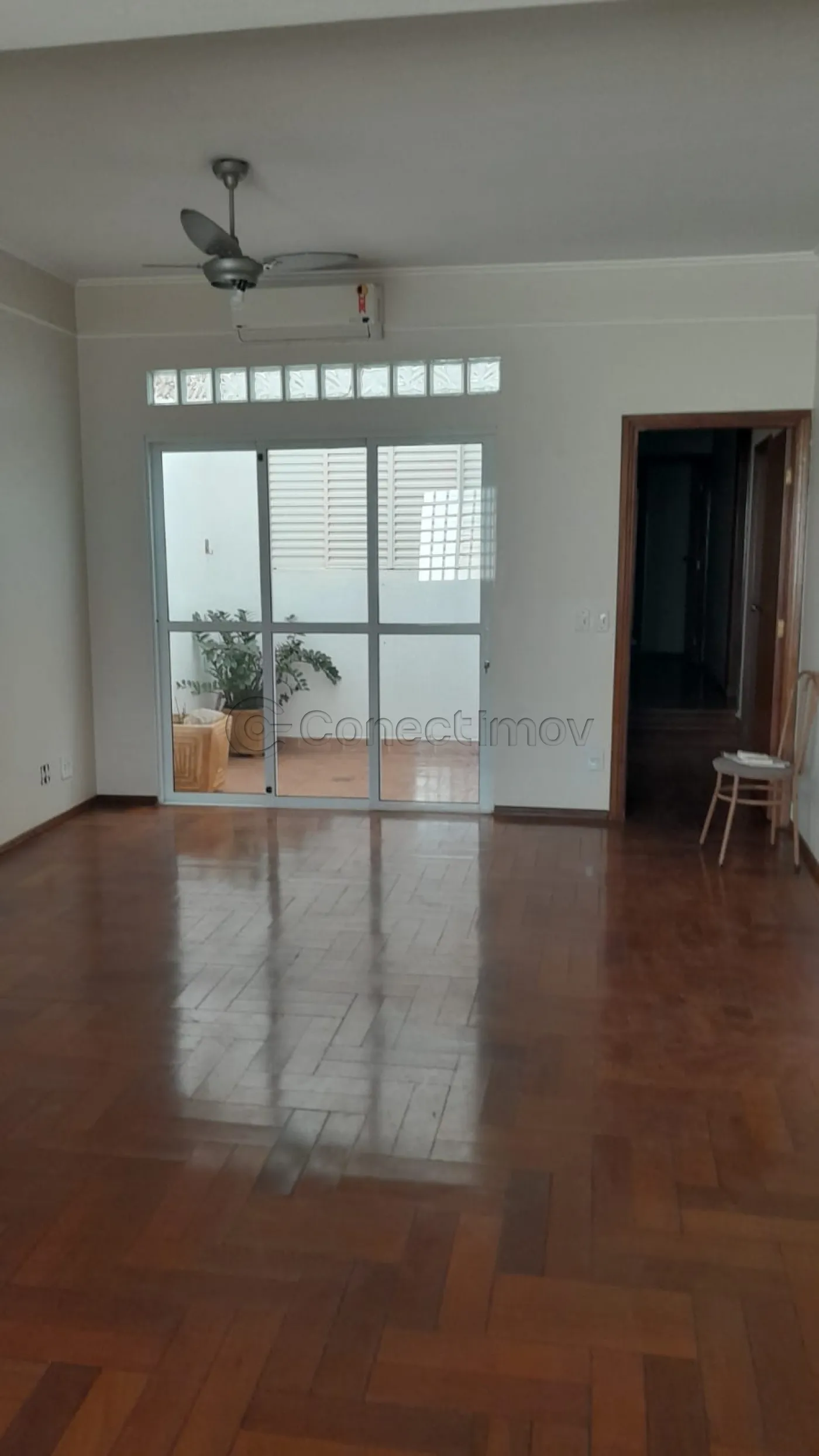 Sala bem iluminada com ar-condicionado e ventilador de teto, garantindo um ambiente sempre agradável