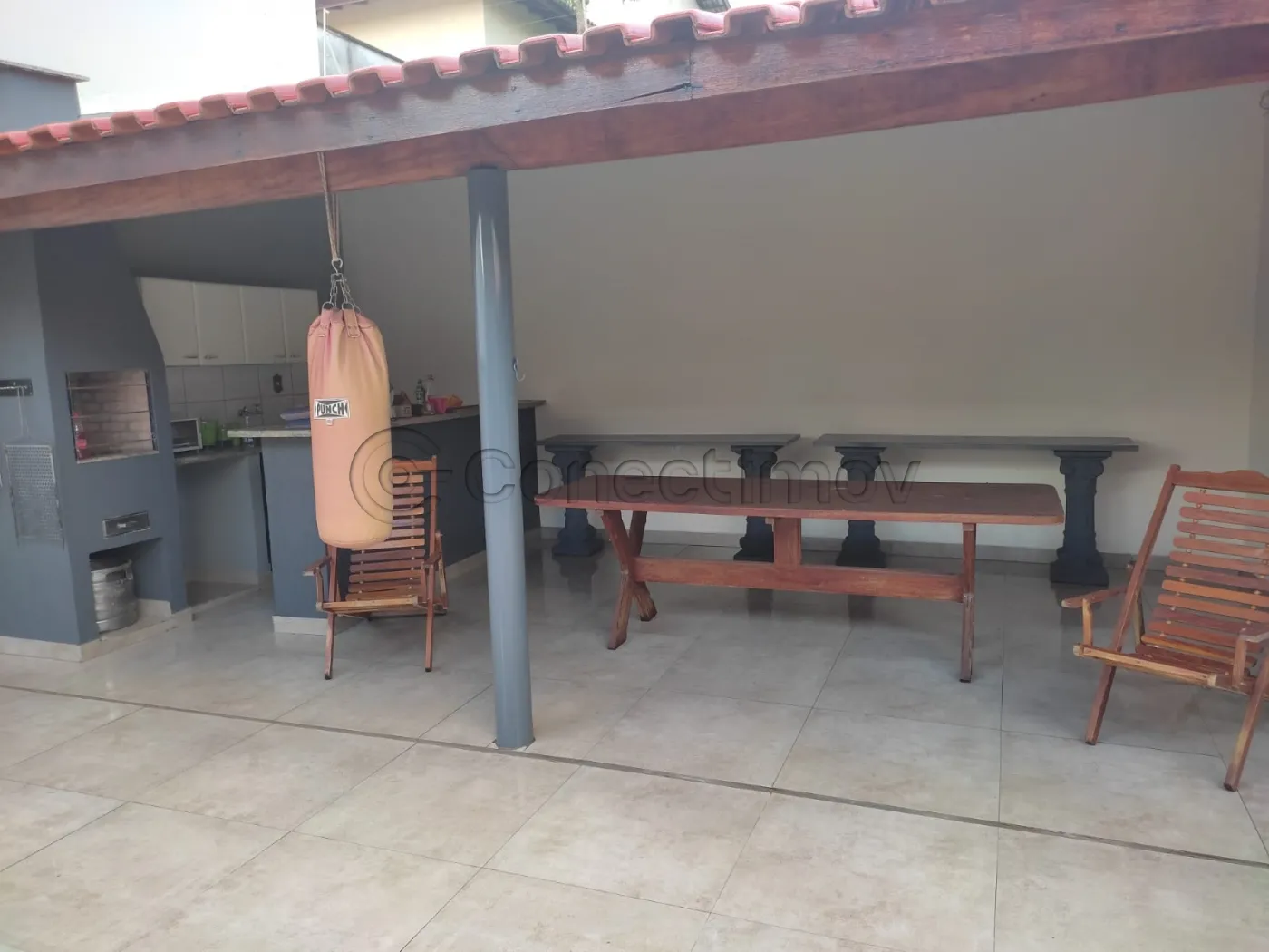 Área gourmet espaçosa com churrasqueira, oferecendo o ambiente ideal para confraternizações