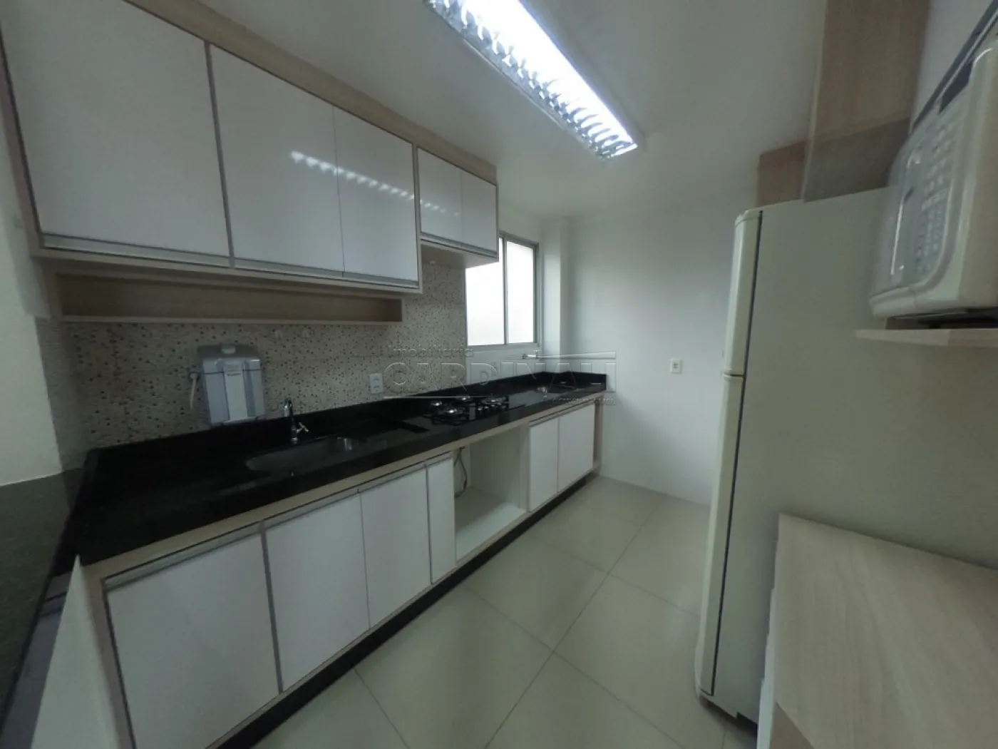 -Cozinha, com geladeira, microondas, cooktop, (forno vai ser instalado) filtro de água, armários e gabinetes