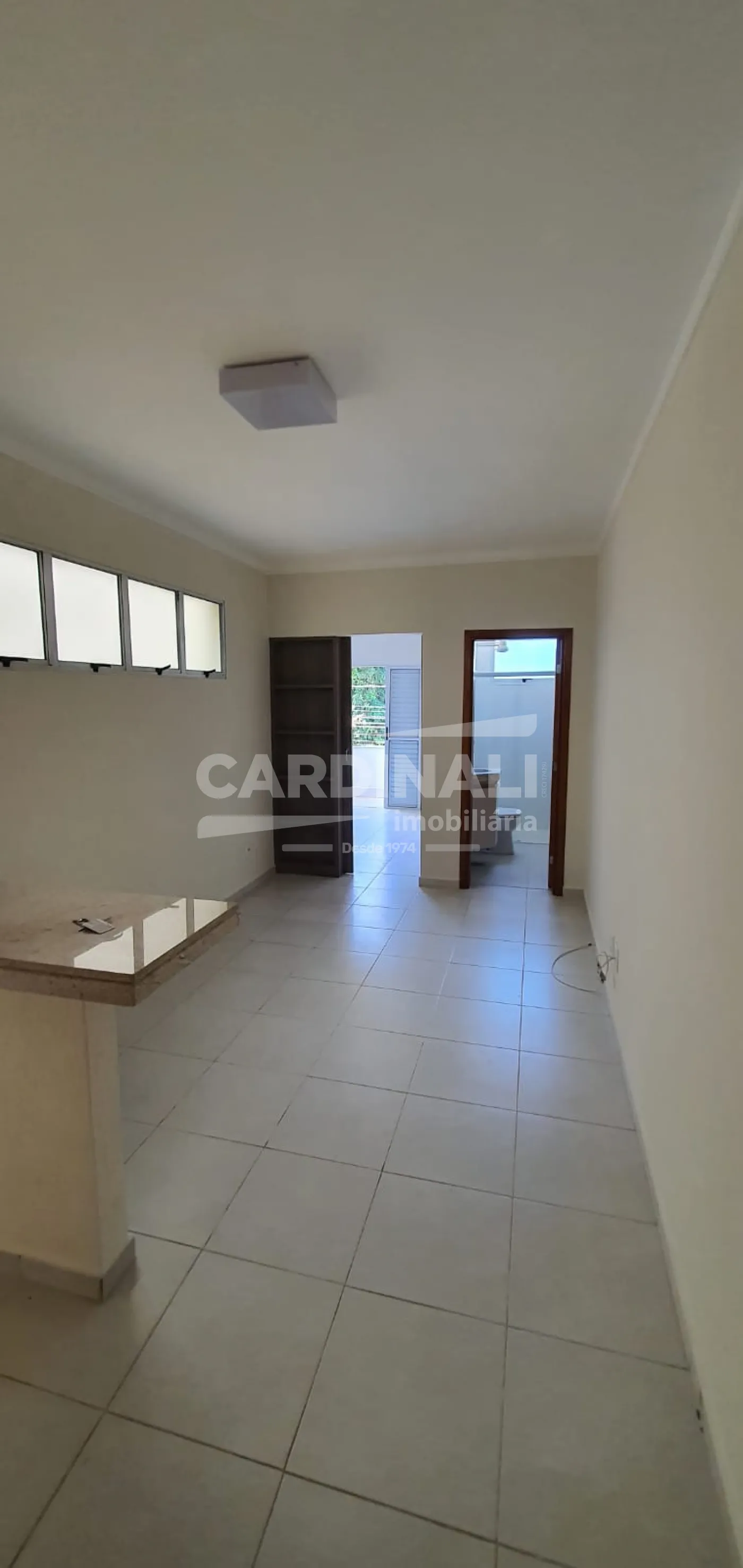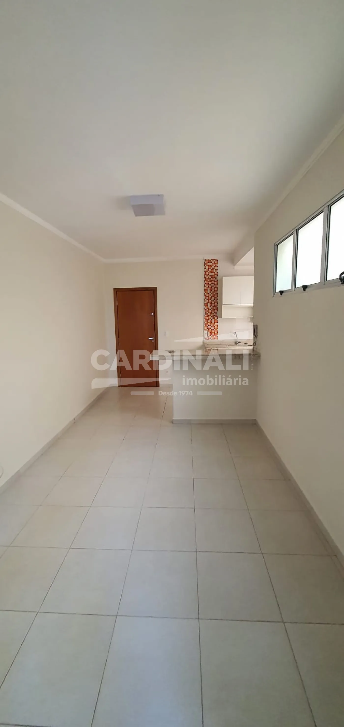 Sala integrada à cozinha, proporcionando um ambiente prático para o dia a dia