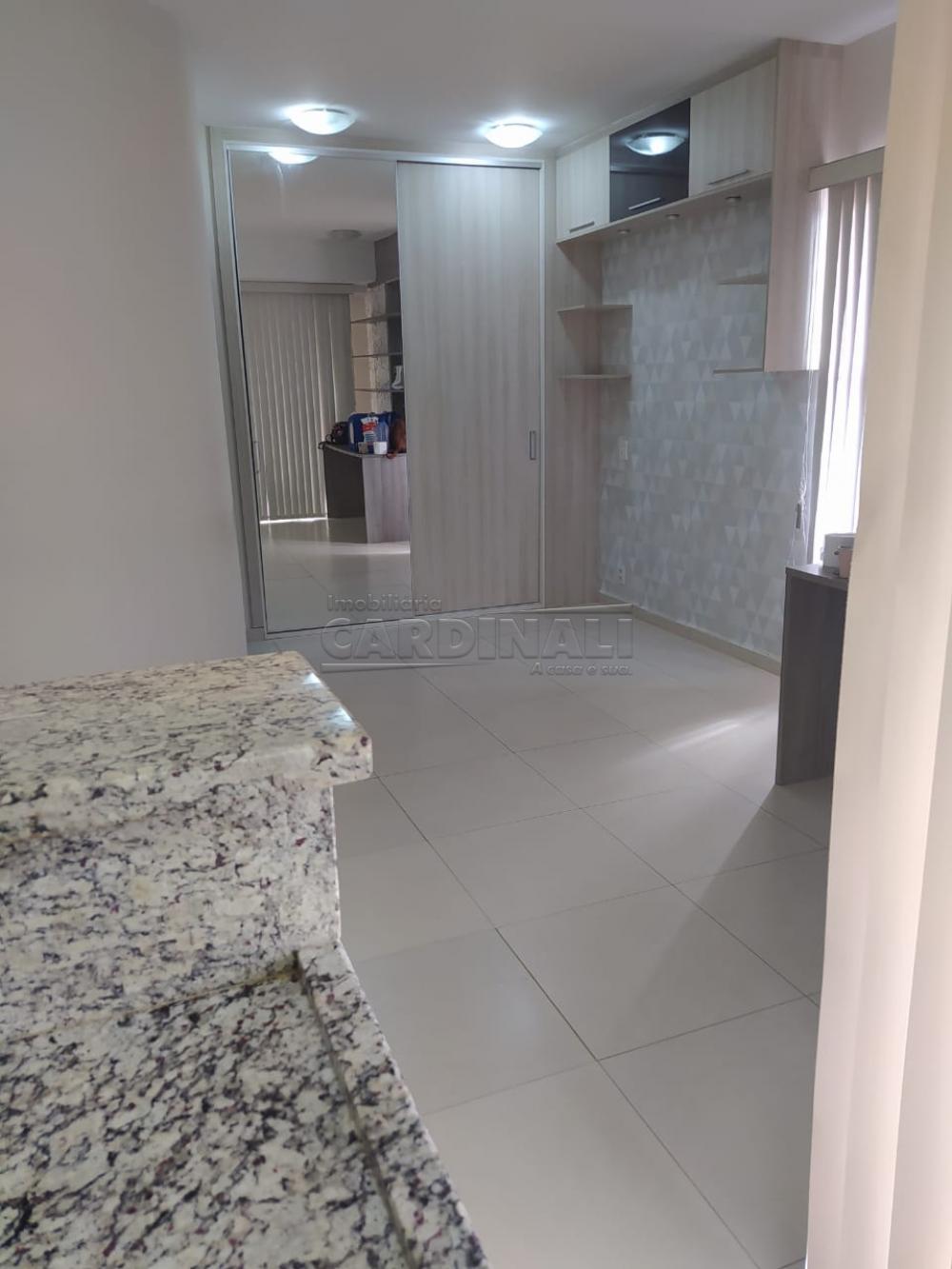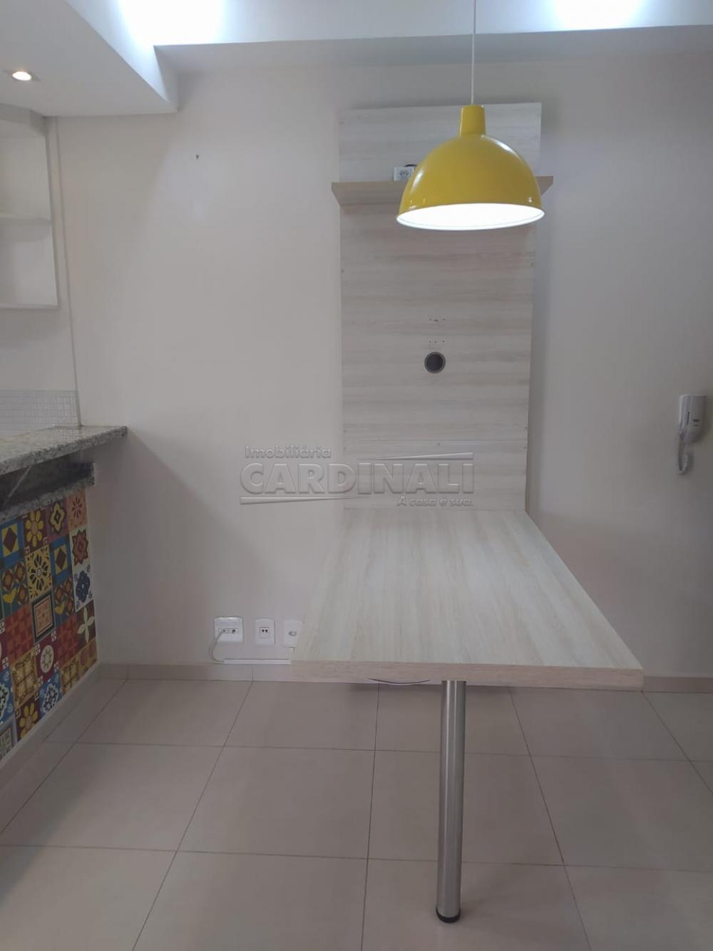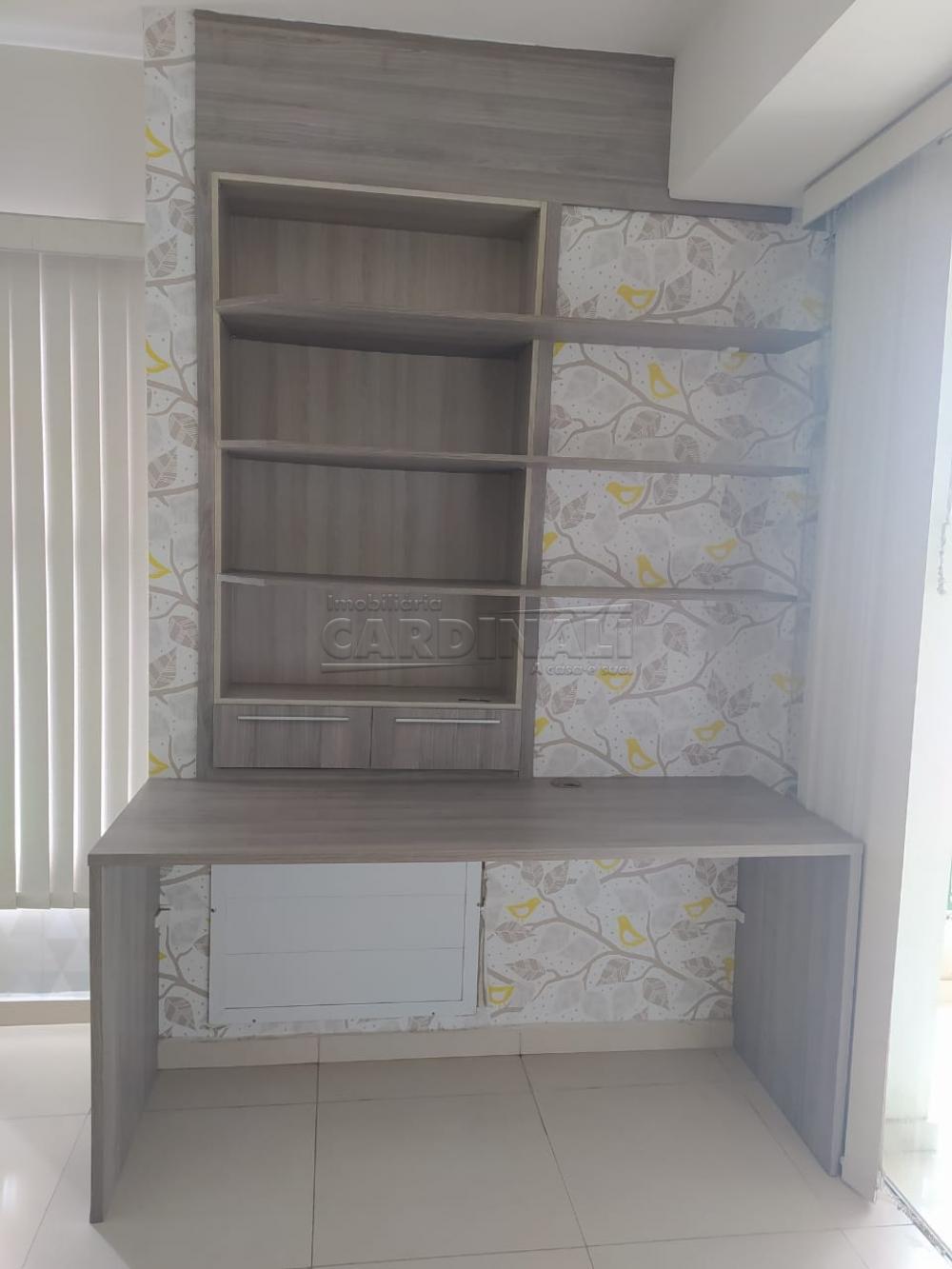 Imóvel mobiliado com balcão e armários na cozinha, sendo cozinha com fogão e forno elétrico. Dormitório com 1 guarda roupa e estante para livros e 1 painel acoplado com uma mesa e banheiro com box em blindex, armário com espelho e gabinete. Churrasqueira na varanda. Portaria 12 hs. Excelente localização.