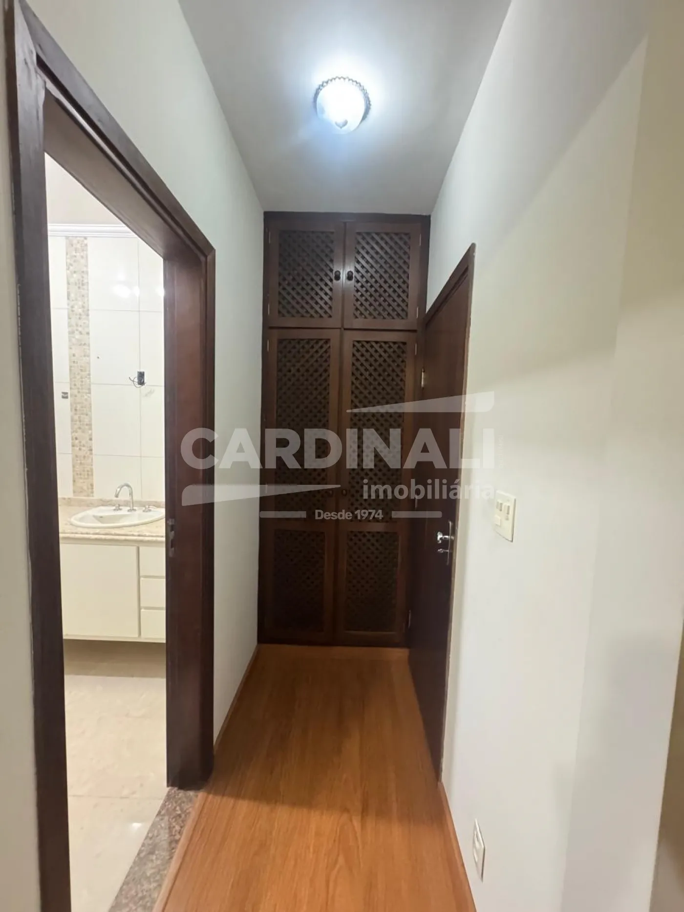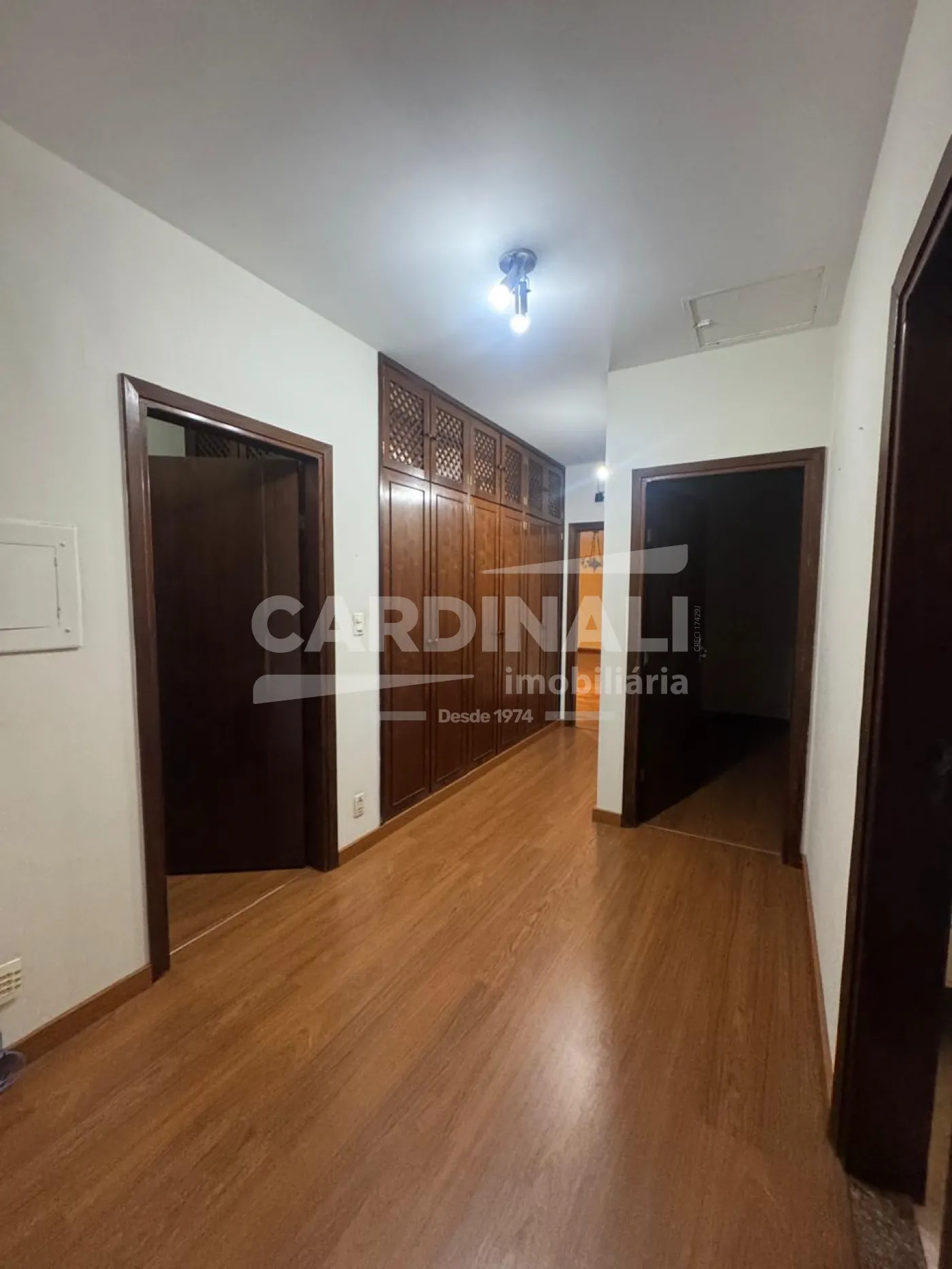 A integração dos ambientes através do jardim de inverno traz luz natural e uma sensação de amplitude ao lar. A suíte principal e as demais áreas com armários embutidos maximizam o uso do espaço, proporcionando ordem e elegância. Os acabamentos escolhidos a dedo, como o taco de imbuia e o porcelanato, não apenas enriquecem visualmente como garantem uma manutenção reduzida ao longo dos anos.