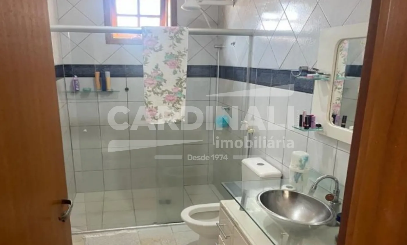 Casa assobradada contendo 03 dormitórios sendo 01 tipo suíte, piso laminado, banheiro da suíte com piso frio, azulejo na parede até o teto, box de vidro temperado, gabinete embaixo da pia; 01 sala de estar com piso laminado; 01 sala de jantar com piso frio; 01 cozinha com piso frio, azulejo na parede até o teto, armários sob medida, gabinete embaixo da pia; 01 copa com piso frio; 01 banheiro social com piso frio, azulejo na parede até o teto, box de vidro temperado, gabinete embaixo da pia; área de serviço; forno e fogão a lenha; churrasqueira; 03 vagas de garagens, sendo 02 cobertas e 01 descobertas..