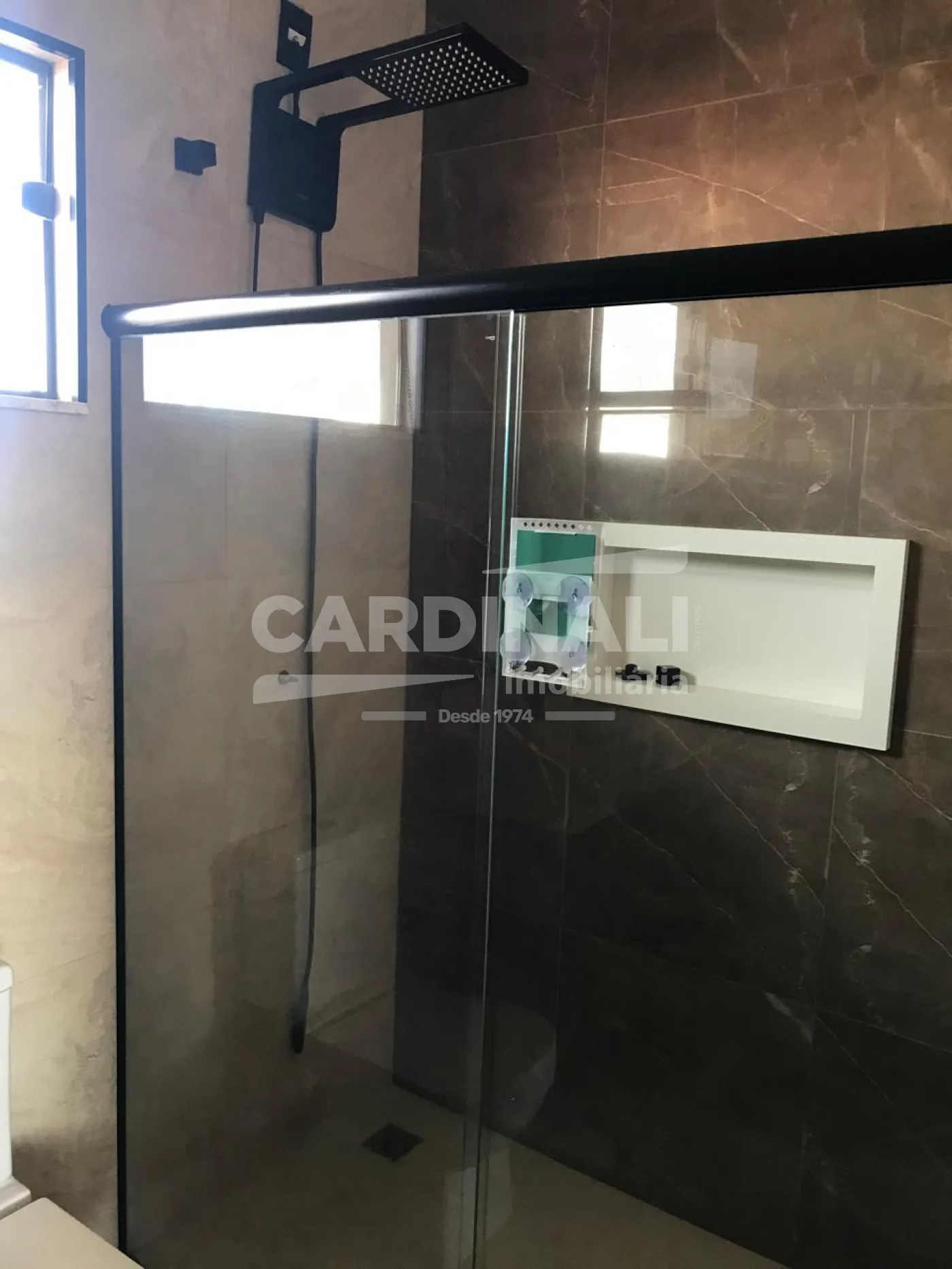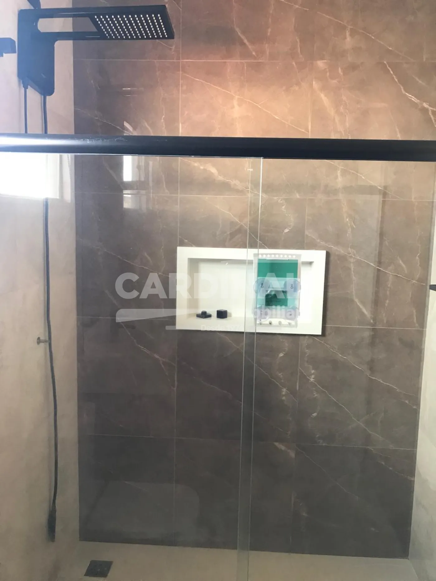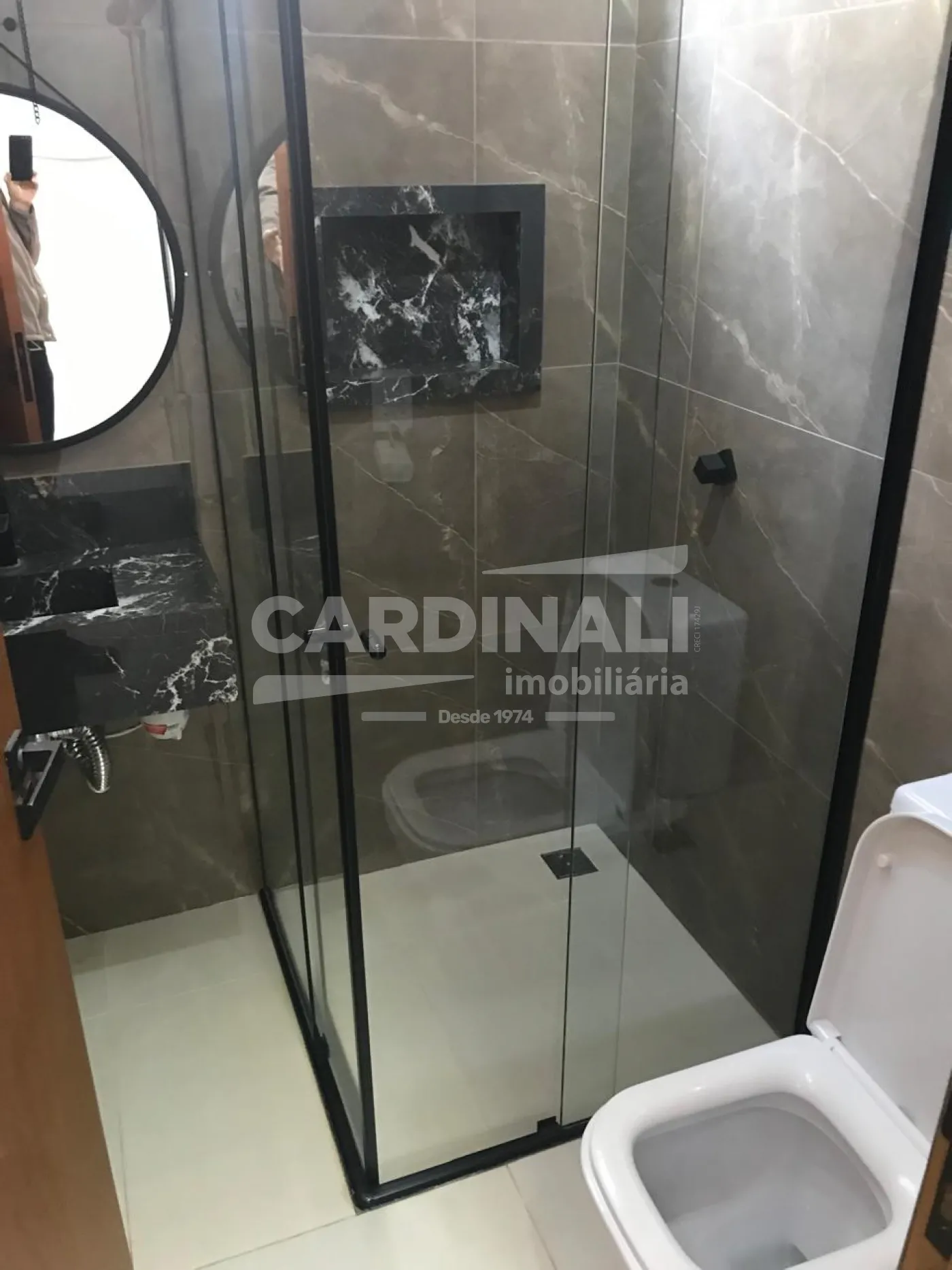 Acabamentos em porcelanato e mármore, trazendo elegância e facilidade de manutenção