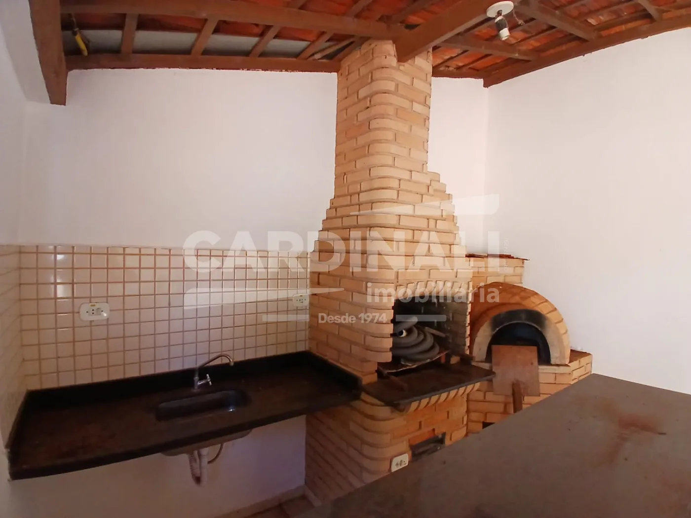 Área gourmet com churrasqueira e forno a lenha oferecendo local ideal para eventos corporativos
