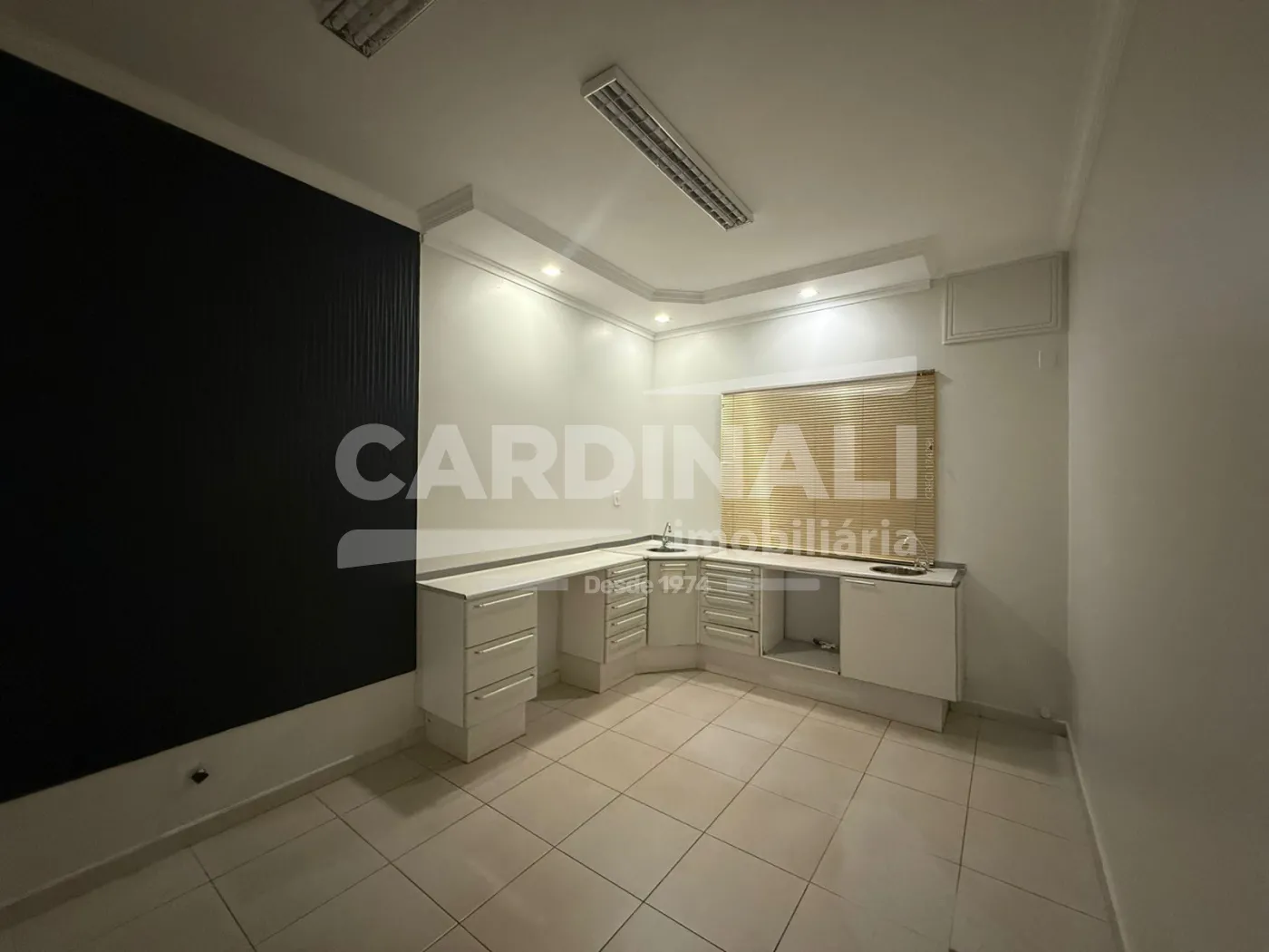 - 03 Salas com armários, pontos de hidráulica, gabinetes, cortinas sendo uma sala com ar condicionado;